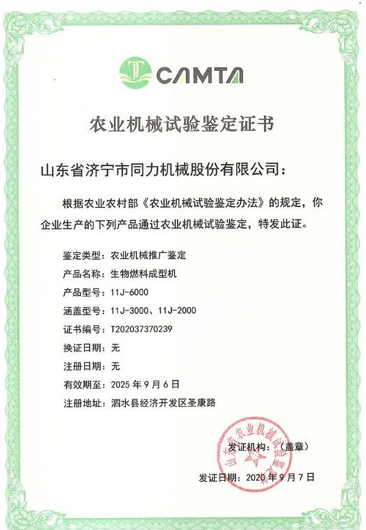 熱烈祝賀山東省濟(jì)寧市同力機(jī)械股份有限公司11J-6000、11J-3000、11J-2000產(chǎn)品通過了山東省農(nóng)機(jī)鑒定站的農(nóng)業(yè)機(jī)械推廣鑒定,獲得了山東省農(nóng)業(yè)機(jī)械試驗鑒定證書。